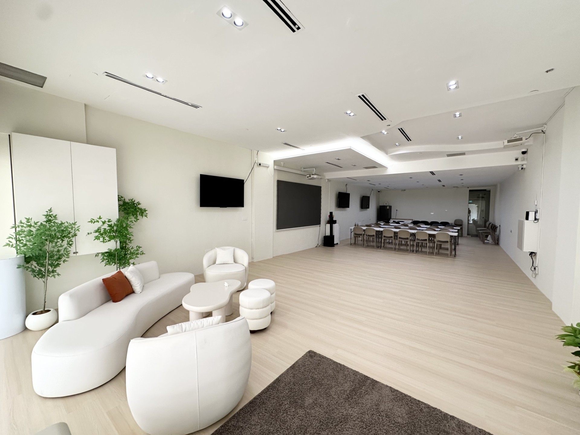 Spanning 1,700 square feet, Ju Space is a versatile open-concept space ideal for private events, workshops, and studio sessions. This venue comfortably hosts 80 to 100 guests, making it the perfect setting for larger-scale functions and creative projects.